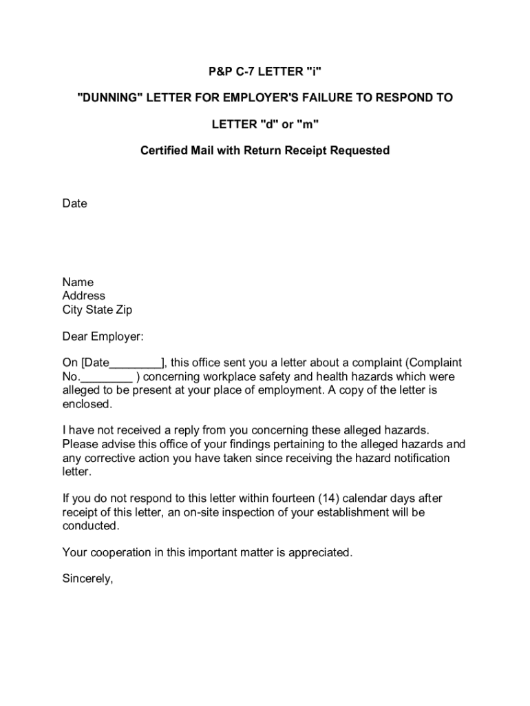 Get the free P&P C-7 LETTER "i" "DUNNING" LETTER FOR ...