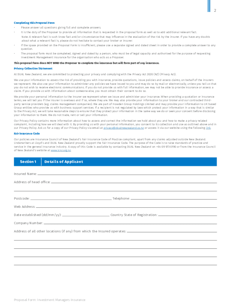 1Proposal Reinvestment Managers InsuranceIMPORTANT NOTICE Please read the following before proceeding to complete this proposal form. Your Investment Managers Insurance Policy is issued on a CLAIMS