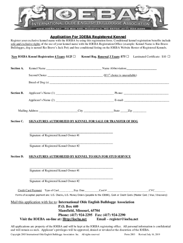 Get the free Online Kennel Name Registration - Olde English Bulldogge