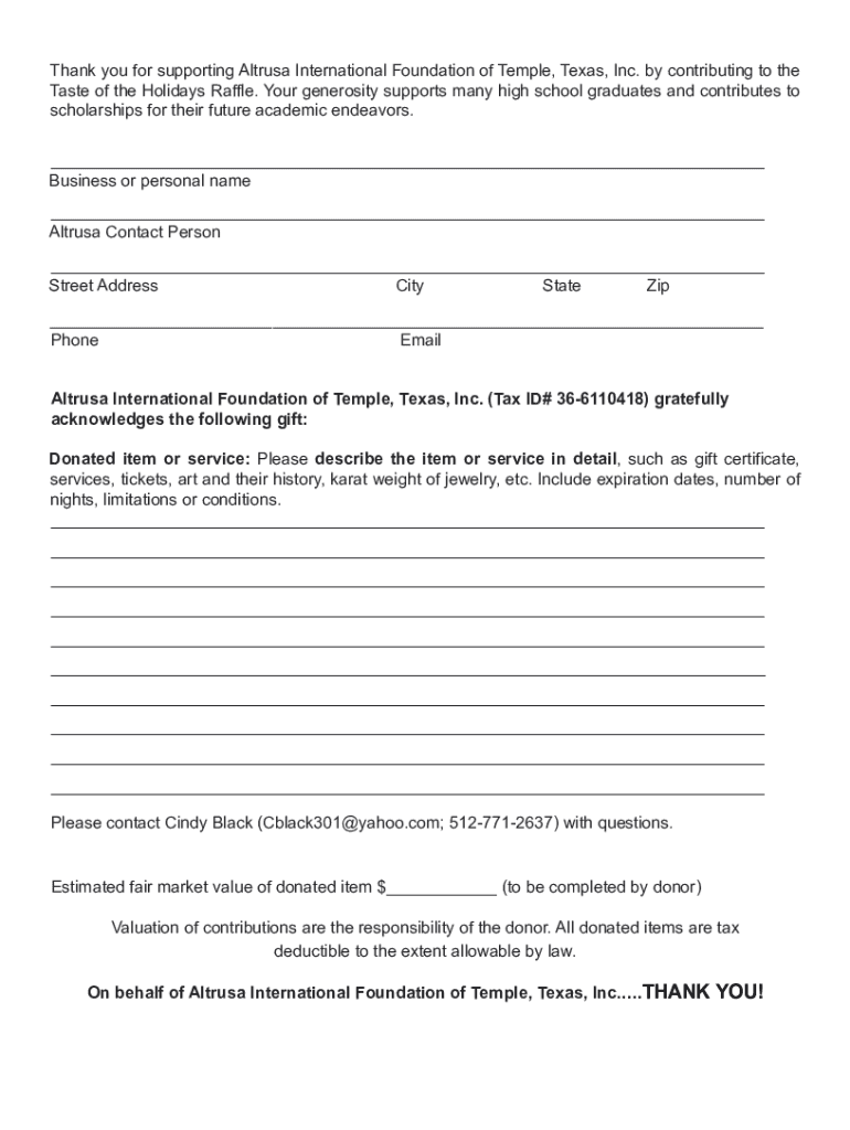Thank you for supporting Altruism International Foundation of Temple, Texas, Inc. by contributing to the Taste of the Holidays Raffle. Your generosity supports many high school graduates and contributes