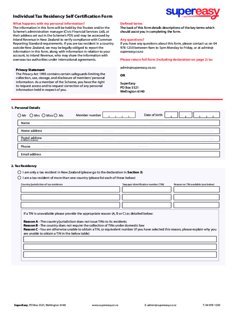 Individual Tax Residency Self Certification Form What happens with my personal information? The information in this form will be held by the Trustee and/or the Schemes' administration manager (Civic