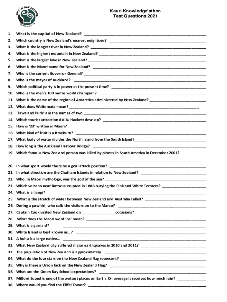 Kari Knowledgeathon Test Questions 20211. What is the capital of New Zealand? 2. Which country is New Zealand's nearest neighbor? 3. What is the longest river in New Zealand? 4. What is the highest