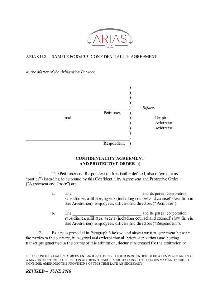 Get the free ARIAS-U.S.-Sample-Form-3.3-Confidentiality-Agreement (Edited 12.3.19).doc