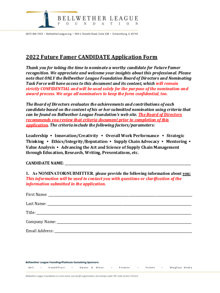 2022 Future Fame CANDIDATE Application Form Thank you for taking the time to nominate a worthy candidate for Future Fame recognition. We appreciate and welcome your insights about this professional.