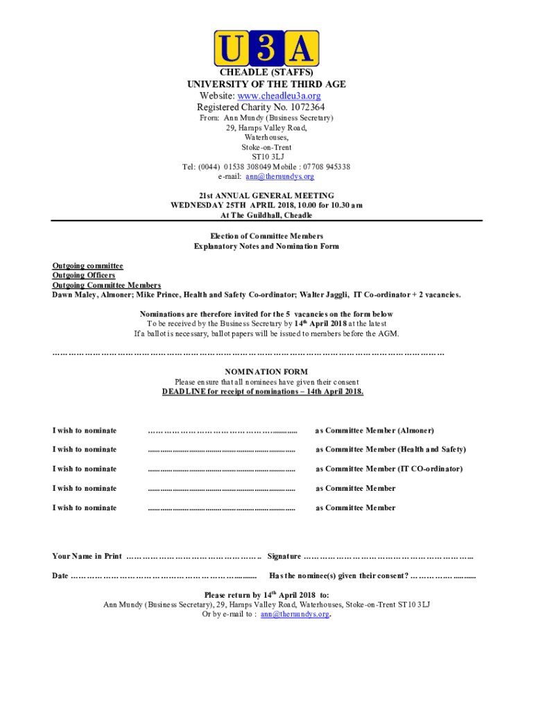 Get the free Nomination form for 2018AGM.doc