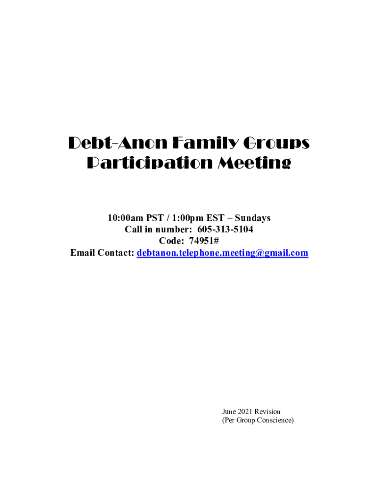 Lebanon Family Groups Participation Meeting 10:00am PST / 1:00pm EST Sundays Call in number: 6053135104 Code: 74951# Email Contact: debt anon.telephone.meeting Gmail. Commune 2021 Revision (Per Group