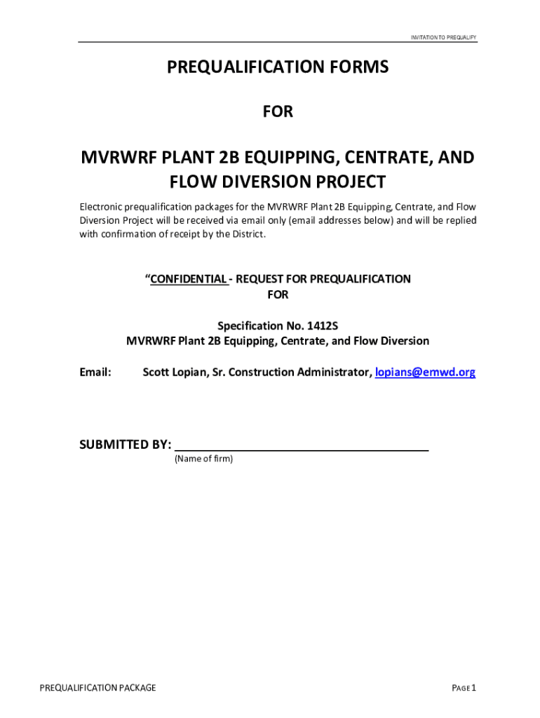 INVITATION TO PREQUALIFYPREQUALIFICATION FORMS FORMVRWRF PLANT 2B EQUIPPING, CENTR ATE, AND FLOW DIVERSION PROJECT Electronic prequalification packages for the MARRY Plant 2B Equipping, Cent rate,