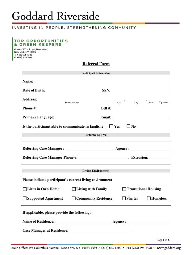 Referral Form - Goddardorg is not the form you're looking for?Search for another form here.