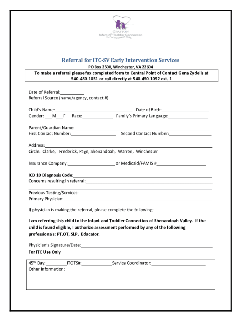 Fill out your referral form itc shen online with pdfFiller!