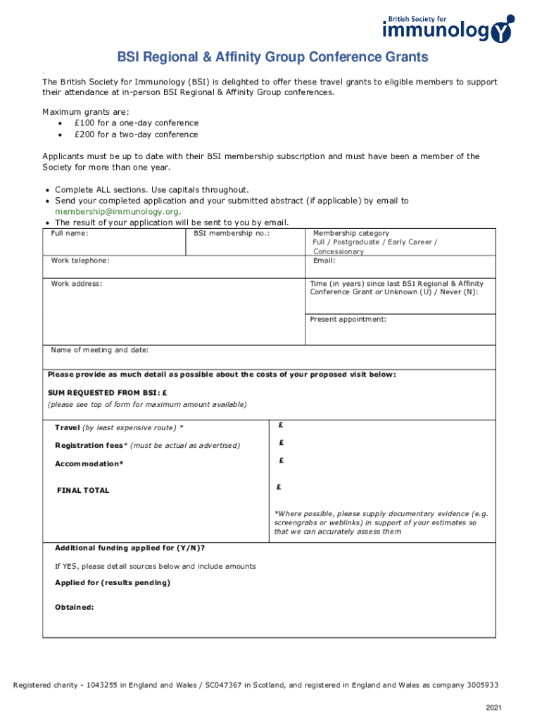 Get the free BSI Regional and Affinity Groups Conference Grants ...