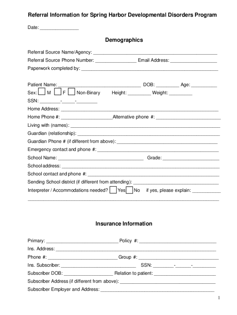 Get the free Referral Information for Spring Harbor Developmental Disorders Unit