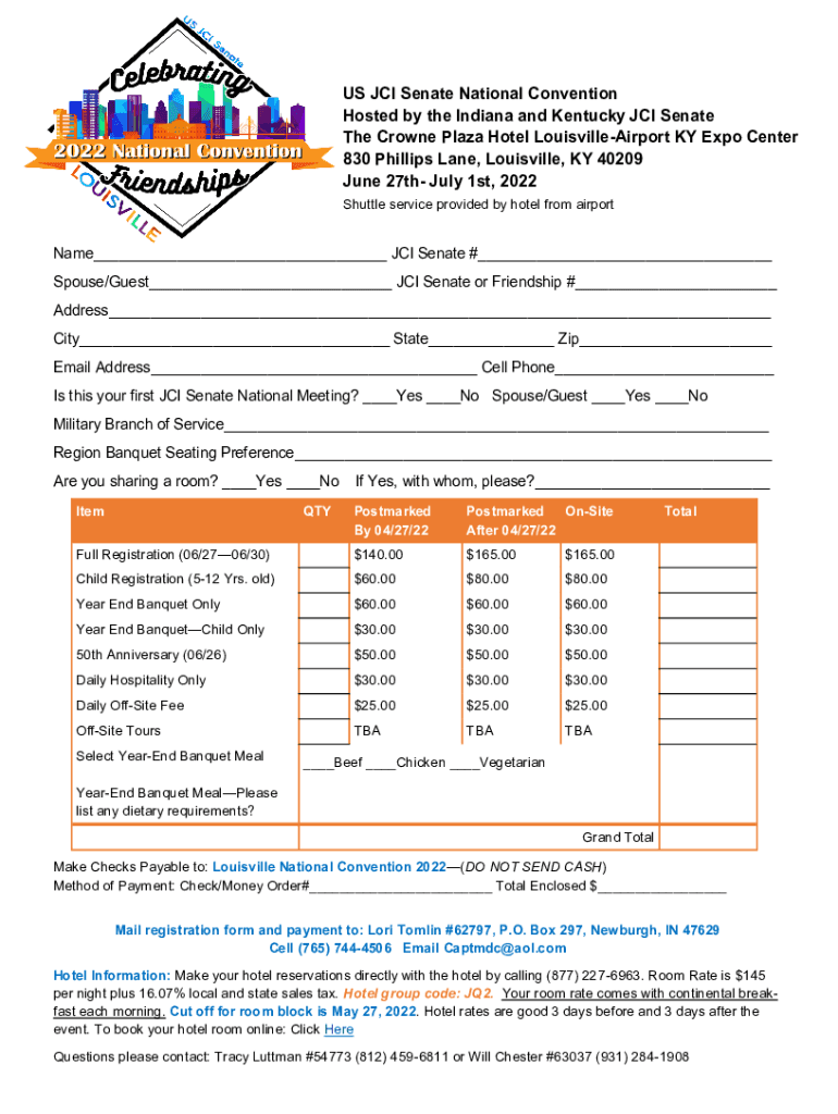 US JCI Senate National Convention Hosted by the Indiana and Kentucky JCI Senate The Crown Plaza Hotel LouisvilleAirport KY Expo Center 830 Phillips Lane, Louisville, KY 40209 June 27th July 1st, 2022