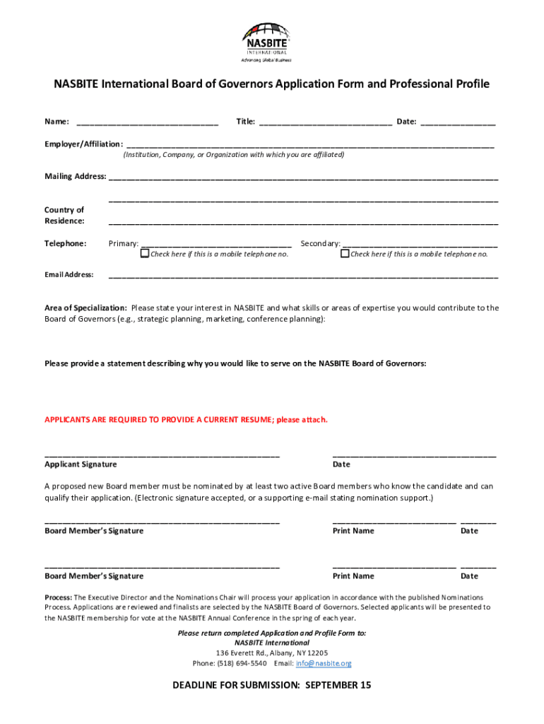 To fill out the Nasbite International Board of Directors application, follow these steps: