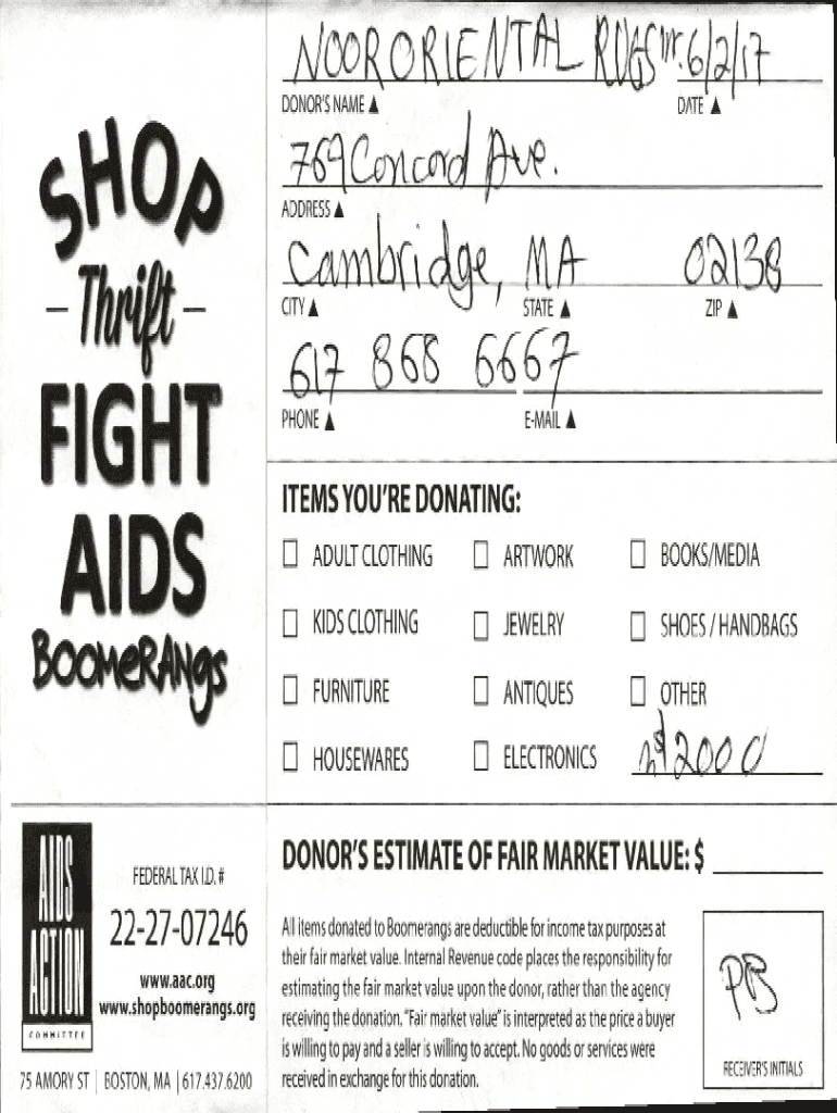 A100 OK OG err ()PI fit DONOR IS NAMES FIGHT AIDS AID S CONFEDERAL TAX I.D. #222707246 www.aac.org www.shopboomerangs.orgCOMMITTEE75 EMORY ST I BOSTON, MA I 617.437.6200DATE71.1 CYT Cry CBI L3fk like.