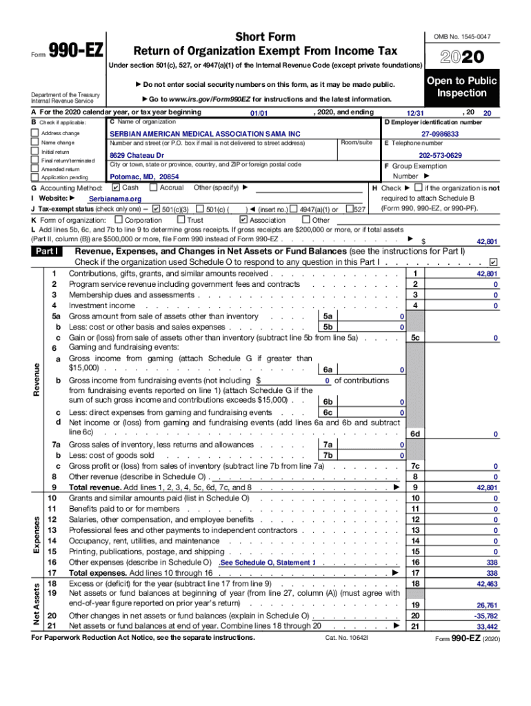 Form990EZShort Form Return of Organization Exempt From Income Tax Under section 501(c), 527, or 4947(a)(1) of the Internal Revenue Code (except private foundations) Department of the Treasury Internal