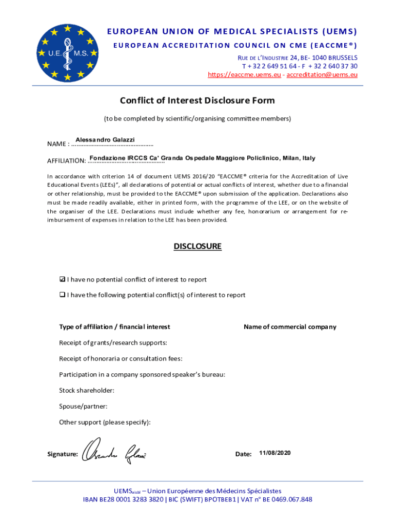 EUROPEAN UNION OF MEDICAL SPECIALISTS (GEMS) EUROPEAN ACC RED STATION COUNT IL ON C ME (EAC CME) RUE DE INDUSTRIES 24, BE 1040 BRUSSELS T + 32 2 649 51 64 F + 32 2 640 37 30 https://eaccme.uems.eu