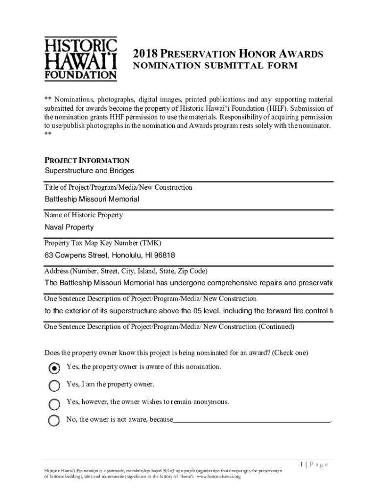 Get the free NOMINATION SUBMITTAL INSTRUCTIONS - Historic Hawaii