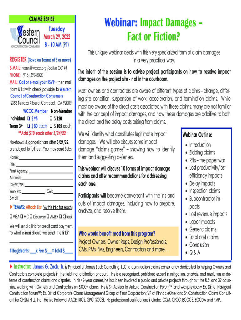 CLAIMS SERIES March 29, 2022 8 10 AM (PT)REGISTER(Save on Teams of 3 or more)EMAIL: van WCCC.org (call in CC #) PHONE: (916) 5998020 MAIL: Call or email your RSVP then mail form & list with check
