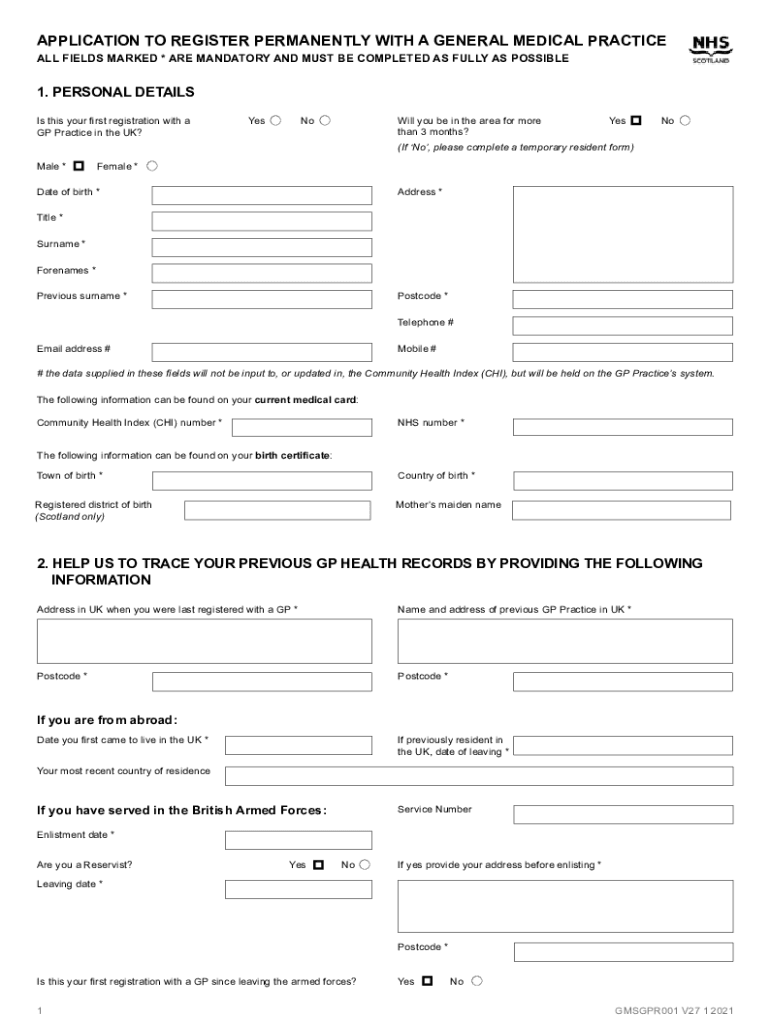 APPLICATION TO REGISTER PERMANENTLY WITH A GENERAL MEDICAL PRACTICE ALL FIELDS MARKED * ARE MANDATORY AND MUST BE COMPLETED AS FULLY AS POSSIBLE1. PERSONAL DETAILS Is this your first registration