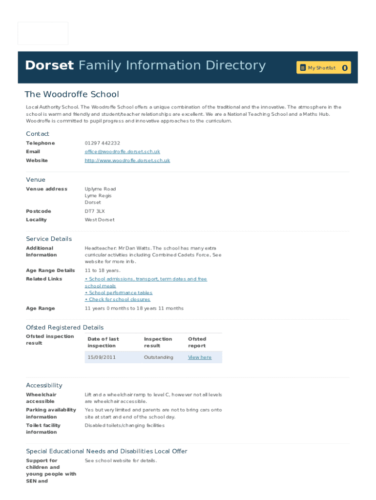 Form Woodroffe Schooldorset Fid is not the form you're looking for?Search for another form here.