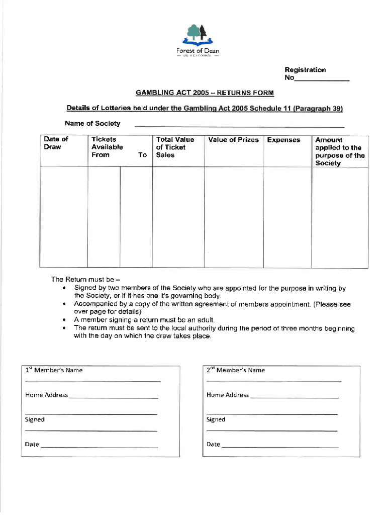 Get the free Lottery Return Form - Forest of Dean District Council