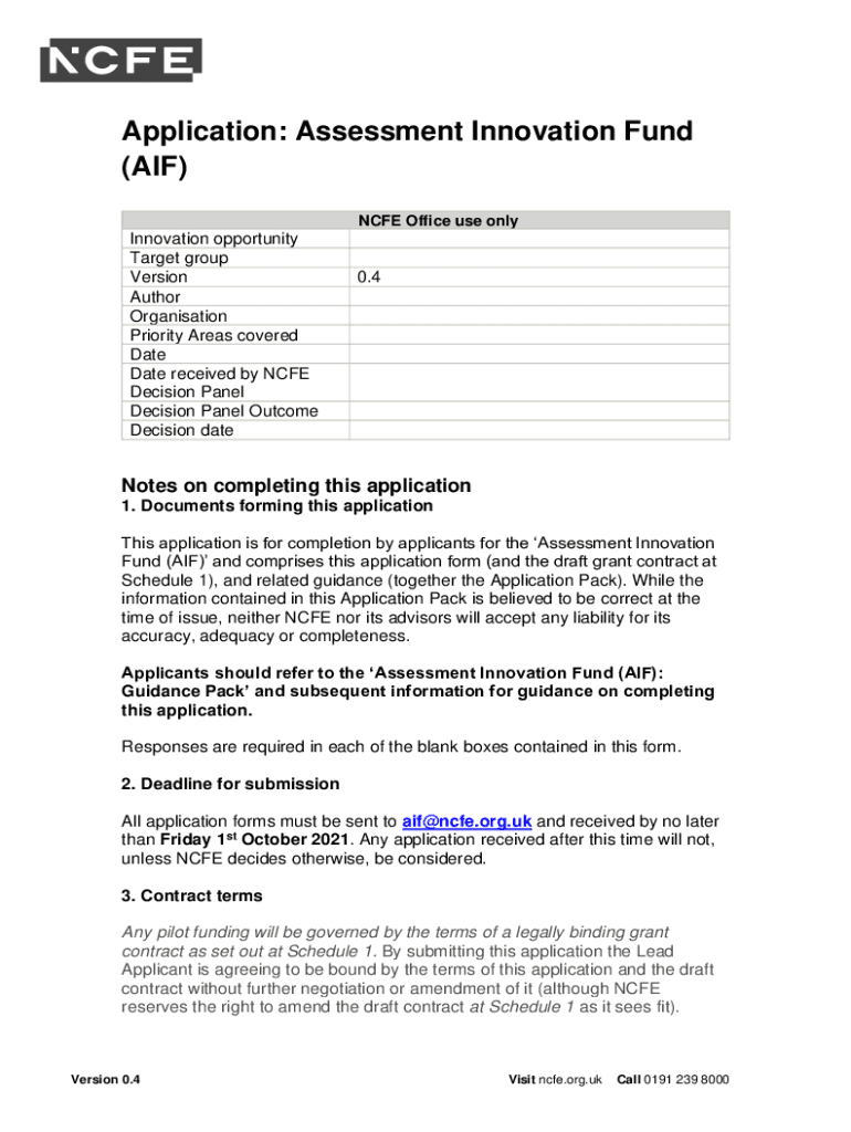 Get the free Application: Assessment Innovation Fund (AIF) - ncfe.org.uk