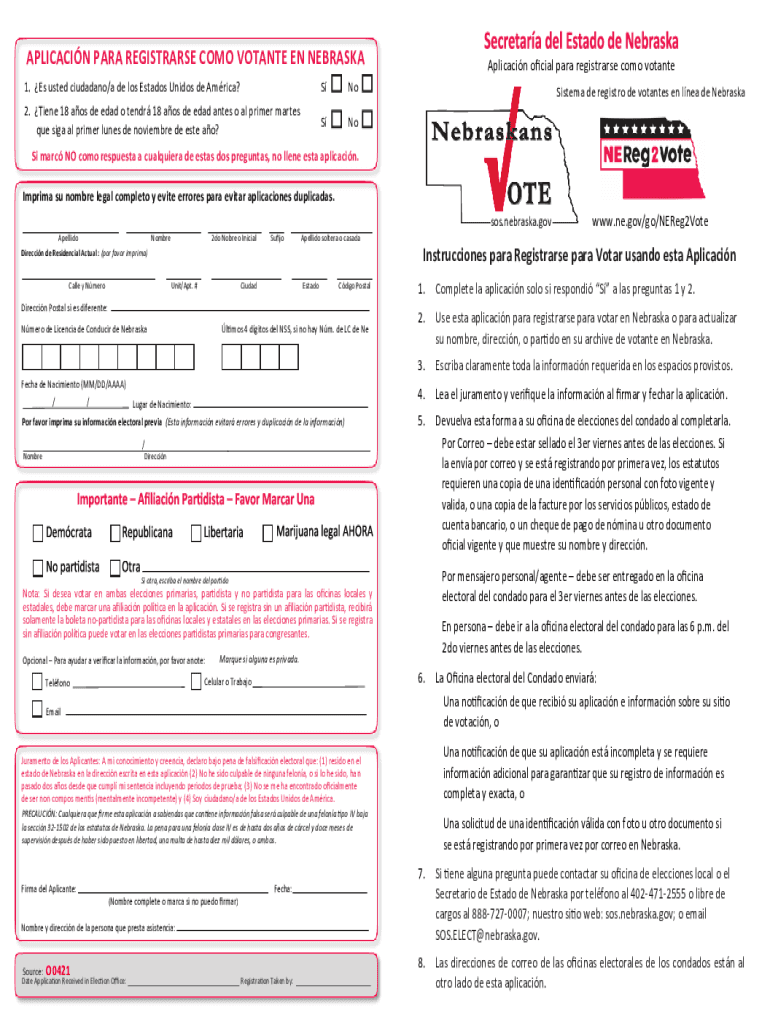 APPLICATION PARA REGISTRARS COMO ROTATE EN NEBRASKA 1. Es used Ciudad/a de Los Estates UNIDO de Amrica?SNo2. Taine 18 AOS de dead o tend 18 AOS de dead antes o all primer marts Que signs all primer