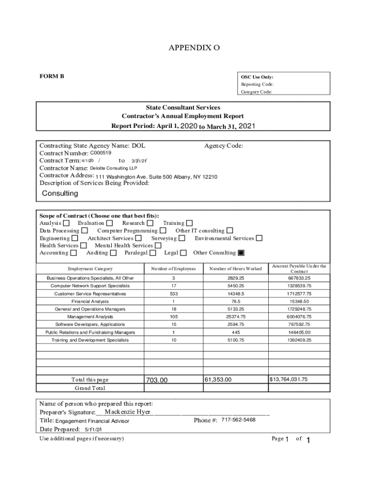 Department of Labor 3550000DocuSign Envelope ID: 71 3479592DBE4C4CA7FA9FB0879BAA80 AC 3272S (Effective 4/12)FORM New York State Consultant Services Contractor\'s Annual Employment Report Period: April