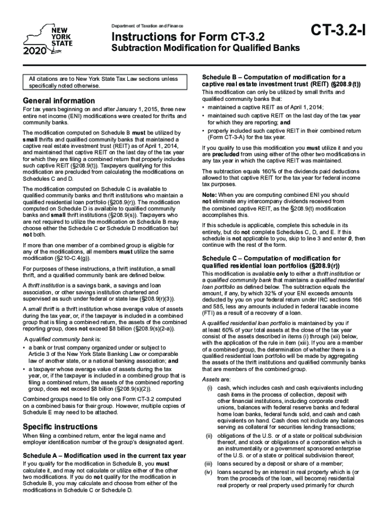 Department of Taxation and FinanceInstructions for Form CT3.2CT3.2ISubtraction Modification for Qualified Banks All citations are to New York State Tax Law sections unless specifically noted otherwise.