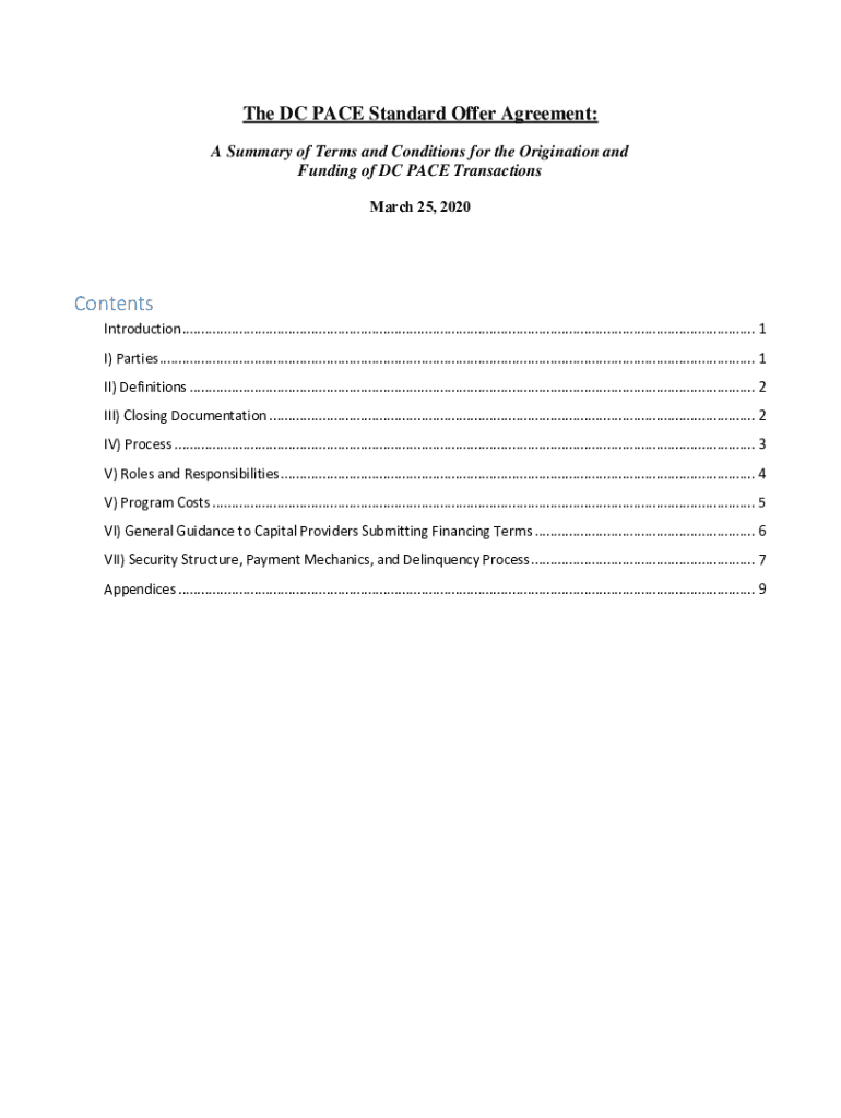 The DC PACE Standard Offer Agreement: A Summary of Terms and Conditions for the Origination and Funding of DC PACE Transactions March 25, 2020Contents Introduction .......................................................................................................................................................