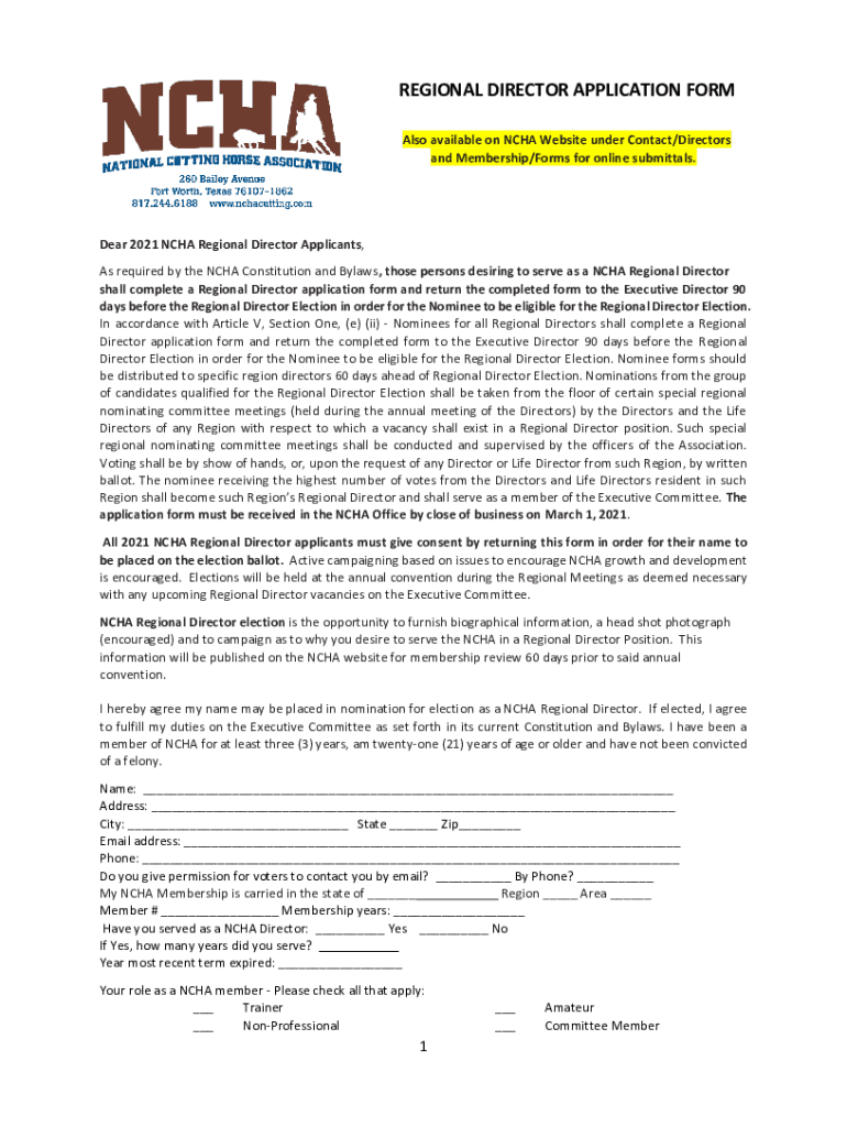 Get the free nchacutting.comdocsdefault-sourceREGIONAL DIRECTOR APPLICATION FORM