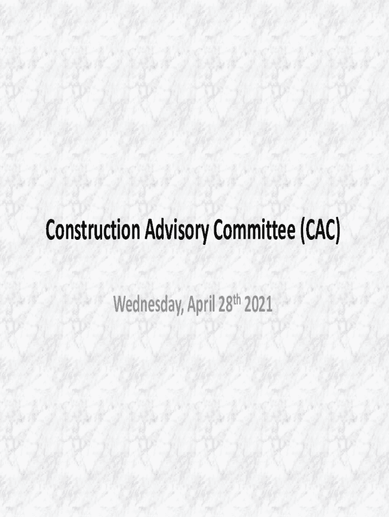 Construction Advisory Committee (CAC) Wednesday, April 28th 2021Before we begin, please note:Please mute your microphone when not talking. This is located at the bottom left of your screen. Before