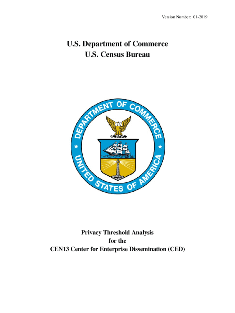 Version Number: 012019U. S. Department of Commerce U.S. Census Bureaucracy Threshold Analysis for the CEN13 Center for Enterprise Dissemination (CED)Version Number: 012019U. S. Department of Commerce