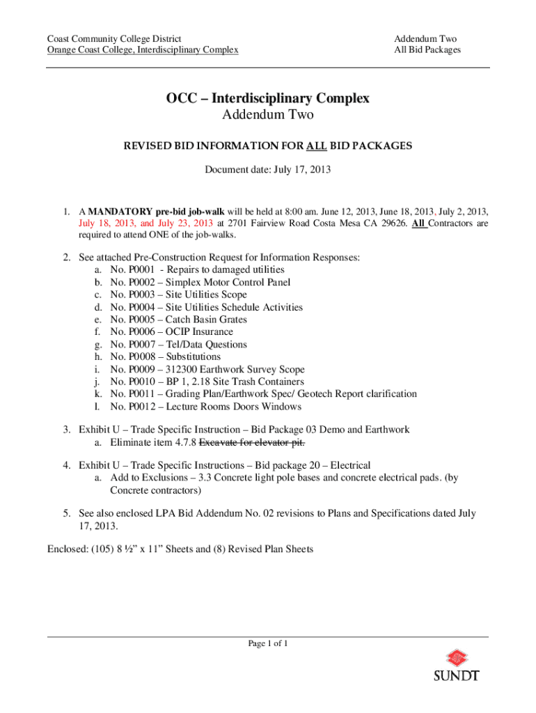 Coast Community College District Orange Coast College, Interdisciplinary ComplexAddendum Two All Bid Packages OCC Interdisciplinary Complex Addendum Two REVISED BID INFORMATION FOR ALL BID PACKAGES