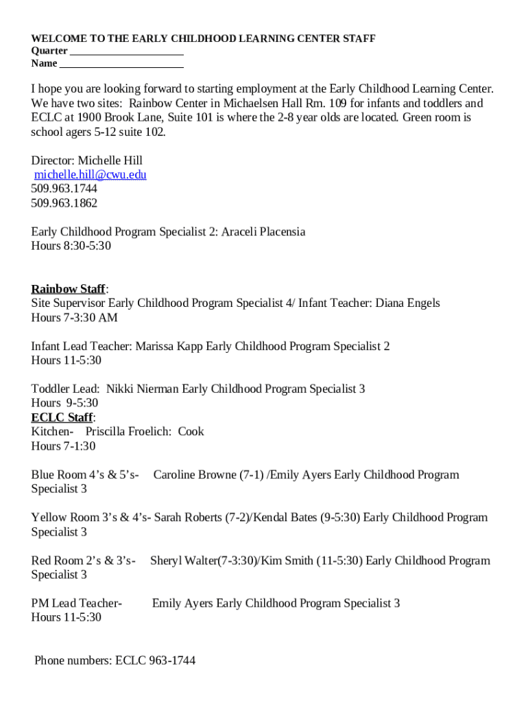 What is www.cwu.eduearly-learningsitesGreetings from the Early Childhood Learning Center Form?