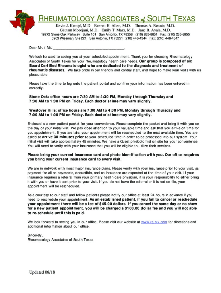 Get the free New Patient History Form - Rheumatology Associates of ...