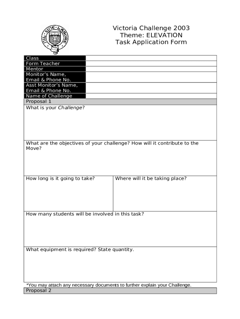 What is Victoria Challenge 2003 Task Application Form?