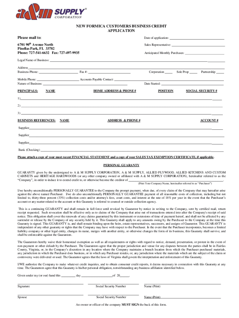 Get the free NEW FORMICA CUSTOMERS BUSINESS CREDIT APPLICATION Please ...