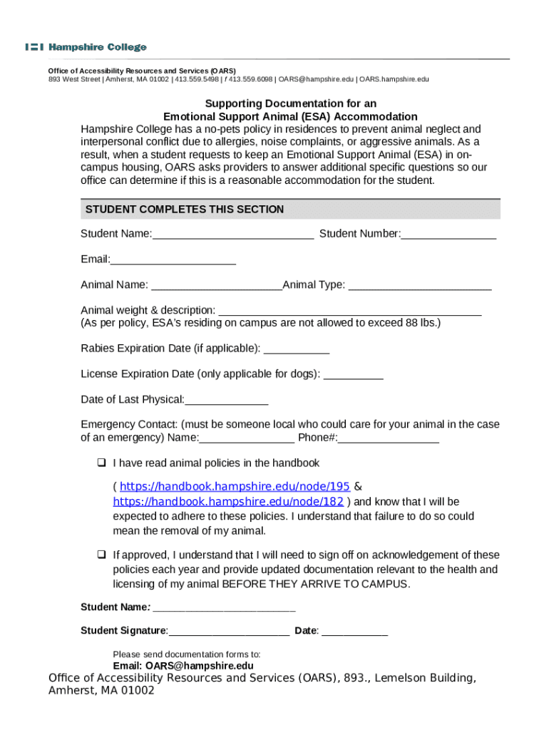 Template Emotional Support AnimalsStudent Disability Services ... instructions