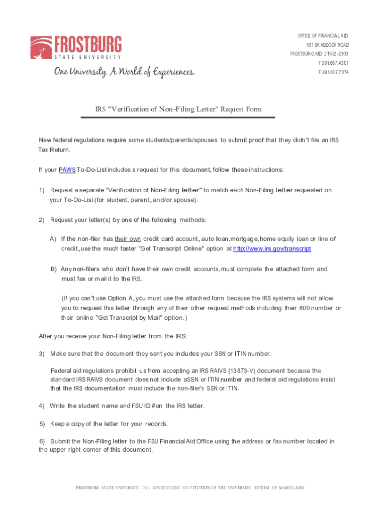 OFFICE OF FINANCIAL AID 101 BR PADDOCK ROAD ROSEBURG, MD 215322303 T 301.687.4301 F 301.687.7074IRS 'Verification of Confining Letter Request Former federal regulations require some students/parents/spouses