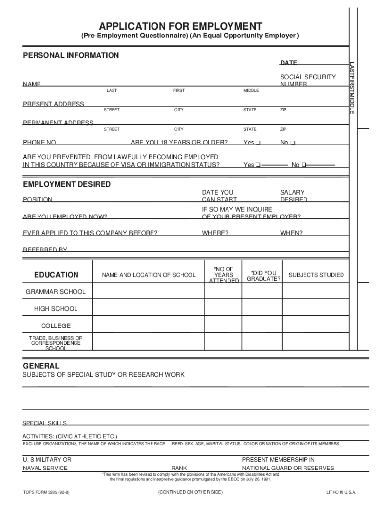 How to fill out employment pre-employment questionnaire equal
