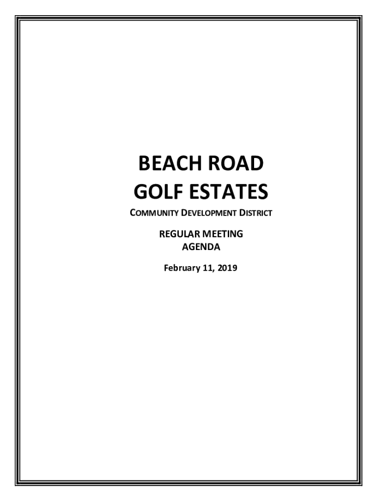 BEACH ROAD GOLF ESTATES COMMUNITY DEVELOPMENT DISTRICT REGULAR MEETING AGENDA February 11, 2019Beach Road Golf Estates Community Development District OFFICE OF THE DISTRICT MANAGER 2300 Glades Road,