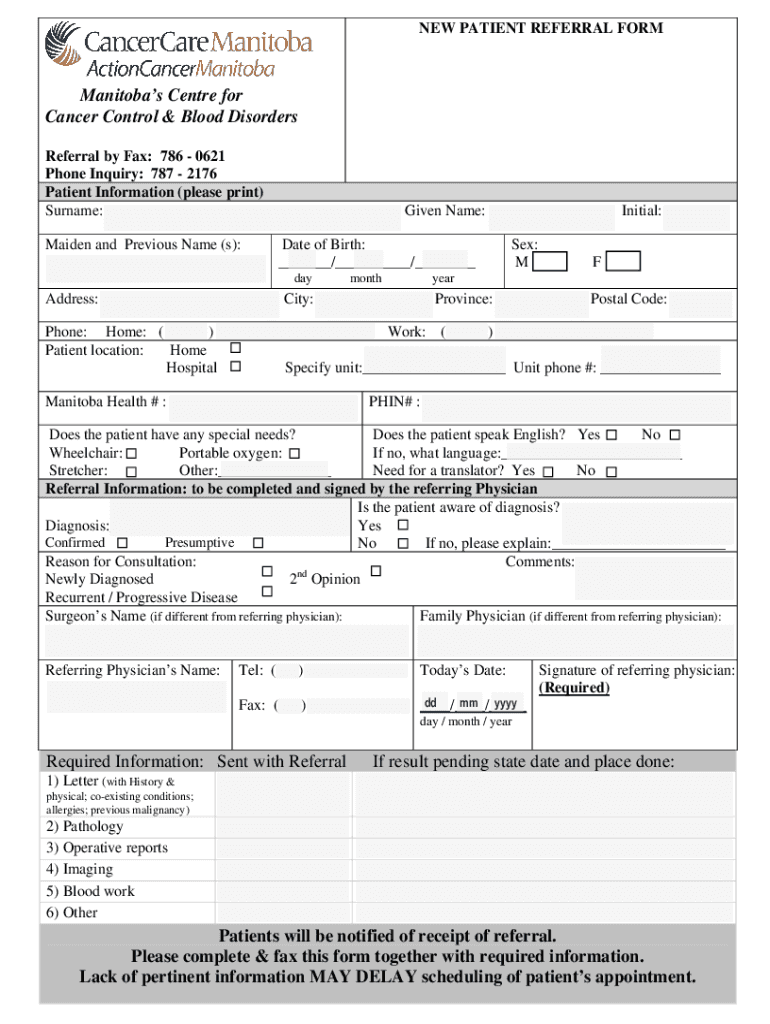 INFORMATION REQUIRED BY COMB REFERRAL Center NONHODGKINS LYMPHOMA (LYMPHOPROLIFERATIVE ONCOLOGY DSG) 1. GENERAL INFORMATION Key:Demographic information (New Patient Referral Form) Letter of referral