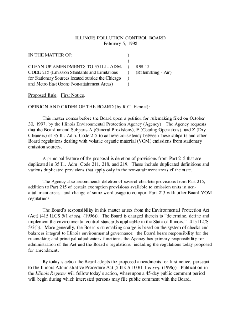 ILLINOIS POLLUTION CONTROL BOARD February 5, 1998, IN THE MATTER OF: CLEANUP AMENDMENTS TO 35 ILL. ADM. CODE 215 (Emission Standards and Limitations for Stationary Sources located outside the Chicago