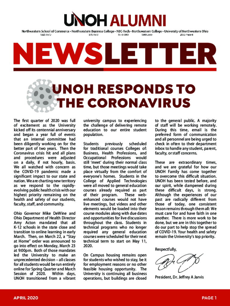 UNH RESPONDS TO THE CORONAVIRUS The first quarter of 2020 was full of excitement as the University kicked off its centennial anniversary and began a year full of events that an internal committee