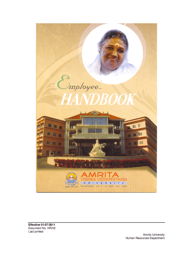 Effective 01/07/2011 Document No. HR/02 Last printedAmrita University Human Resources DepartmentEmployee HandbookAmrita Visa Vidyapeetham, Amrita Nagar (PO), Ettimadai, Coimbatore641 112 www.amrita.edu