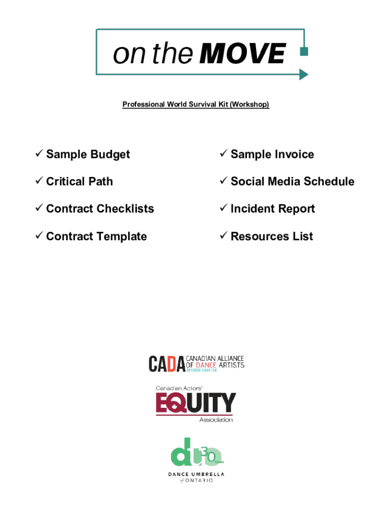 Professional World Survival Kit (Workshop) Sample Budget Sample Invoice Critical Path Social Media Schedule Contract Checklists Incident Report Contract Template Resources ListSAMPLE BUDGET The following