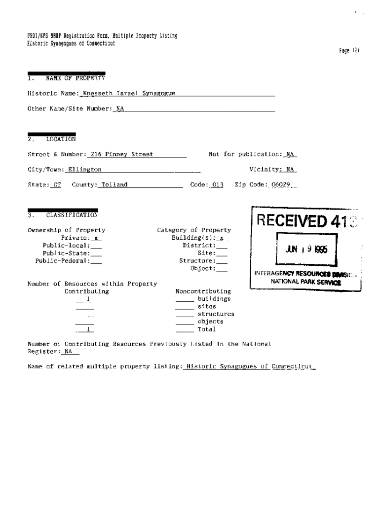 USDA/NPS CNRHP Registration Form, Multiple Property Listing Historic Synagogues of Connecticut Page 1271.NAME OF PROPERTYHistoric Name: Knesset Israel Synagogue Other Name/Site Number: NA2.LOCATIONStreet