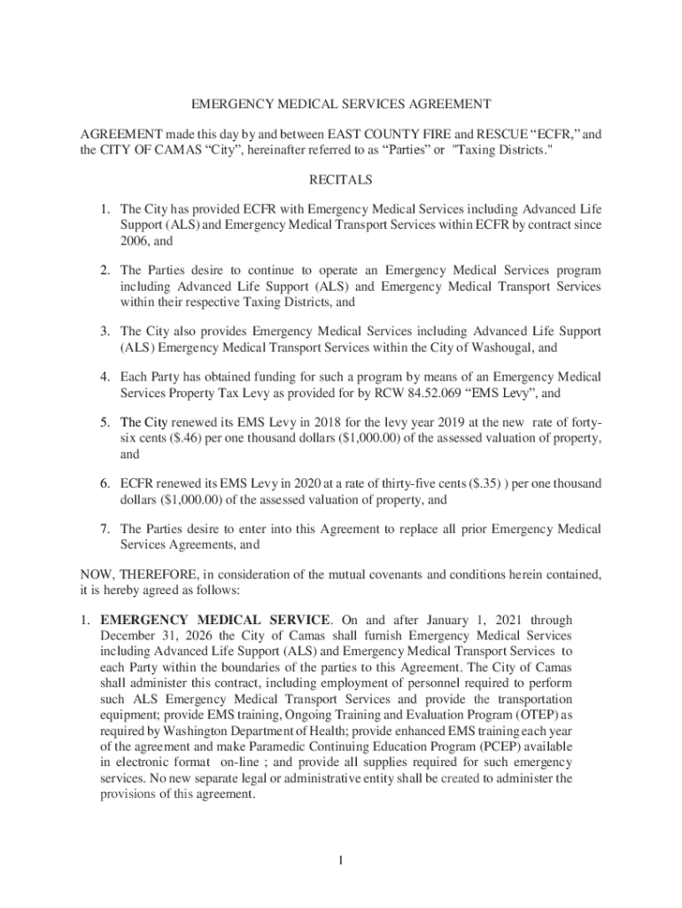 Get the free EMERGENCY MEDICAL SERVICES AGREEMENT ECFR and the CITY OF ...