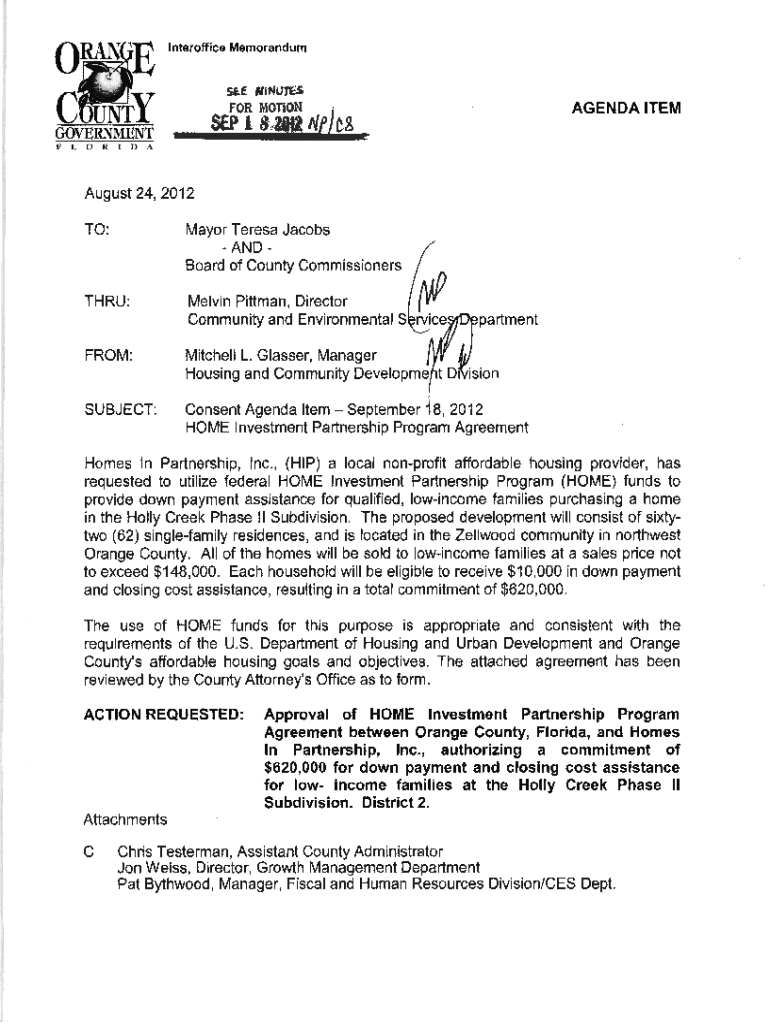 Interoffice Memorandum.f1fiNUTE$fOR MOTION SEP 18.AGENDA ITEMS c&August24, 2012 TO :Mayor Teresa Jacobs Aboard of County CommissionersTHRU :Melvin Pittman, Director Community and Environmental SpartmentFROM